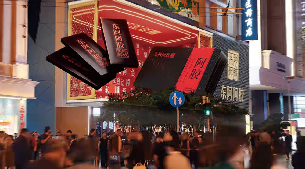 东阿阿胶于上海第一药店3D 大屏重磅推出裸眼3D 品牌视频,通过融合科技感与传统文化,以极具冲击力的视觉语言,向消费者传递品牌历久弥新的品质坚守与创新精神。