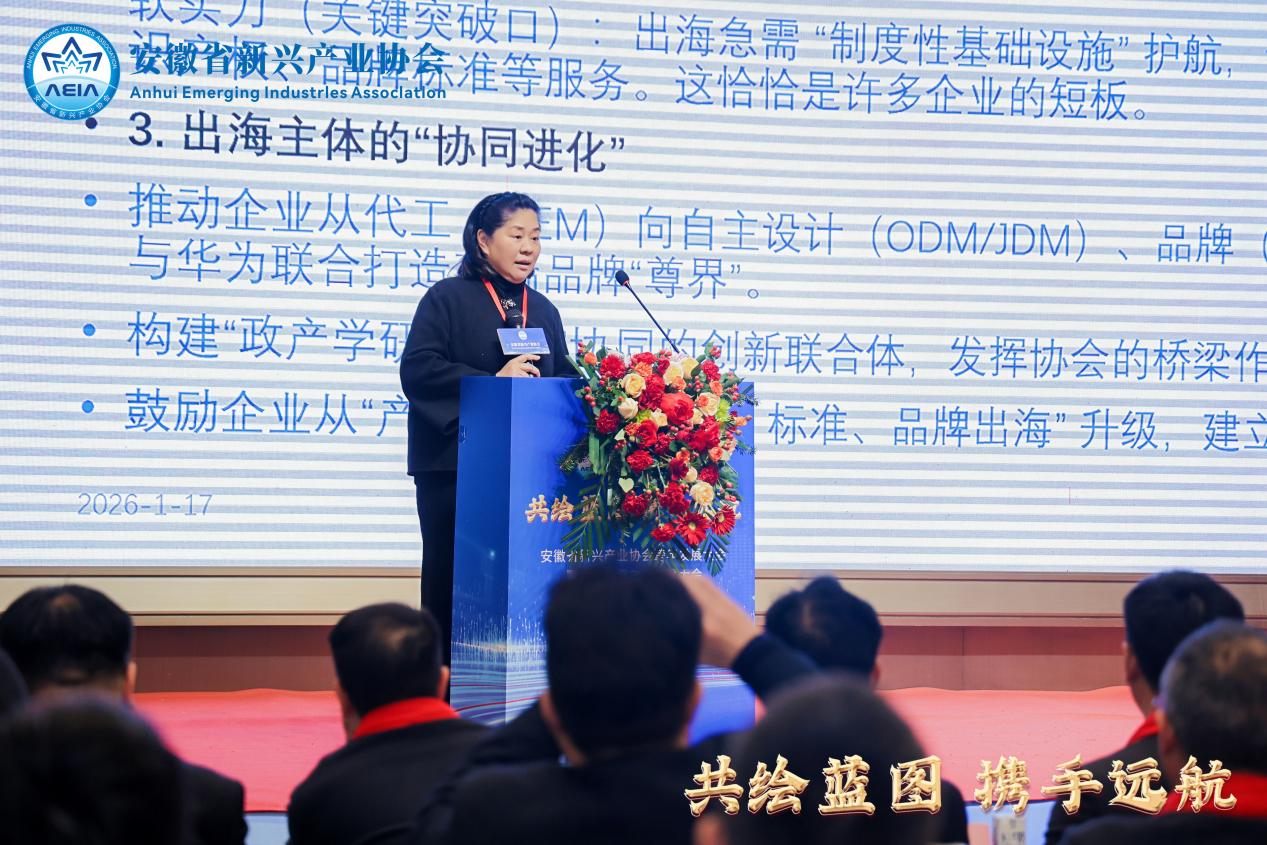 2026年1月17日,"共绘蓝图.携手远航"——安徽省新兴产业协会2026跨年发展大会暨第三届第二次理事大会在合肥举办。本次大会汇聚新兴产业领军企业代表、国际商会代表及协会会员近300人,在全球格局变迁中探寻安徽新兴产业的高质量发展路径。