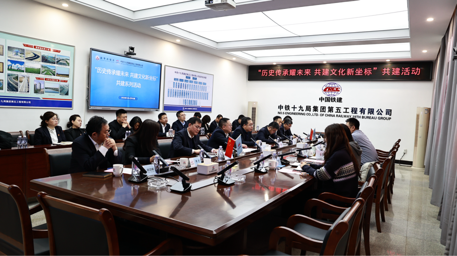 座谈会由中铁十九局五公司党委常委、纪委书记乔恒鑫主持。新华出版社办公室主任、总编室负责人齐泓鑫,图文图书编辑室副主任(主持工作)蒋小云;中铁十九局集团党委工作部(党委组织部、党委宣传部、党委统战部、文化品牌部)部长(经理)张振宇;中铁十九局五公司副总经理、总会计师蔡锐,副总经理、总经济师余跃进,纪委副书记孙继,工会副主席邢月等公司领导,以及双方相关业务负责人共同参会。