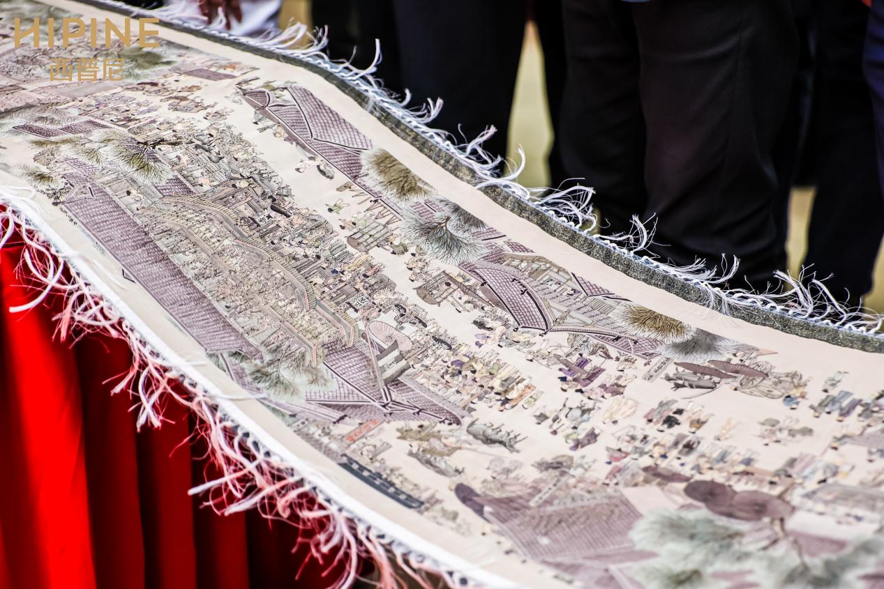 活动现场展示了缂丝版《清明上河图》。据缂丝非遗传承人王鹏巍介绍,缂丝被誉为“织中之圣”,该作品以“通经断纬”的缂丝技艺再现宋代市井风貌,体现了传统工艺的高超水平。