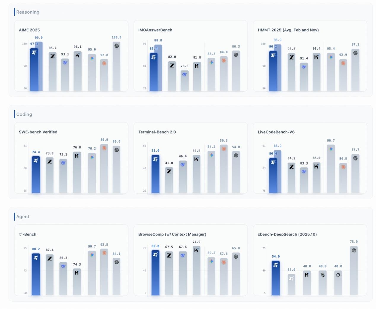 朱亦博表示,在针对智能体能力的 τ²-Bench、BrowseComp等测试,以及LiveCodeBench V6代码挑战和AIME 2025数学竞赛中,Step 3.5 Flash均取得了亮眼成绩,且在 Agent 场景和数学任务上极具竞争力。这意味着,当其面对需要结构化输出的多步推理、复杂逻辑求解、后端自动化和长时间运行等任务时,已具备支持企业级应用落地能力,尤其适用于高频工具调用和对行为可预测性有强要求的系统环境。