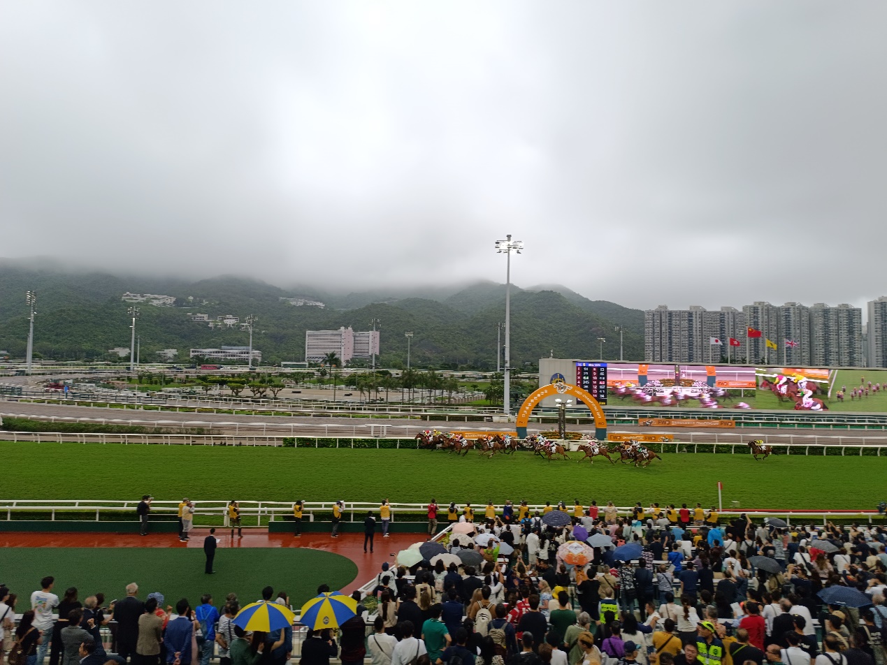 香港赛马会沙田马场,纯血马在观众助威下冲过终点
