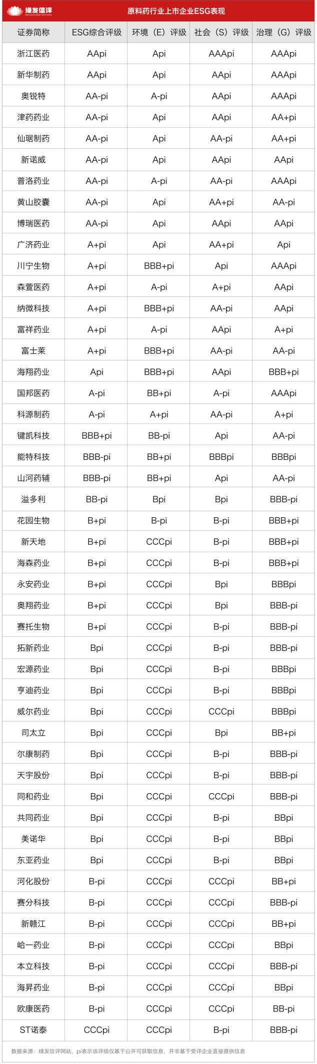 另有超五成企业处在B+pi及以下评级,其中花园生物、新天地等六家企业获B+pi评级;拓新药业、宏源药业等11家企业获Bpi评级;河化股份、赛分科技等七家企业获B-pi评级;ST诺泰获CCCpi评级,反映出行业ESG发展不均衡的现状。