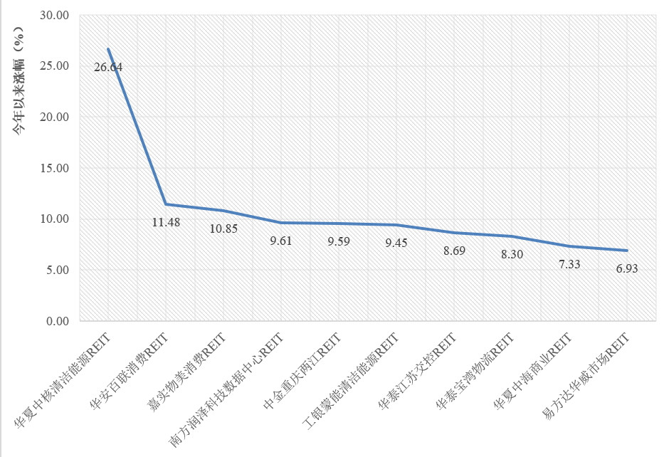今年以来涨幅前十的REITs产品 (数据来源:同花顺iFinD)