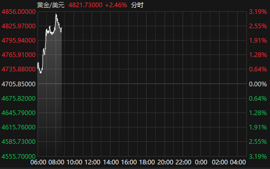 据Choice数据,4月8日,国际现货黄金、白银大幅上涨。现货黄金盘中一度站上4850美元/盎司关口,截至8:40报4821.73美元/盎司,日内涨2.46%;现货白银报76.38美元/盎司,日内涨4.65%。