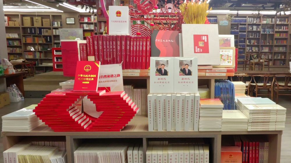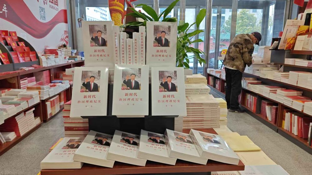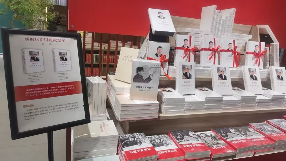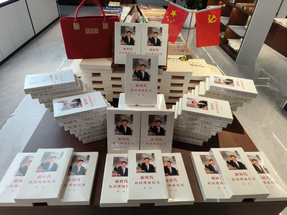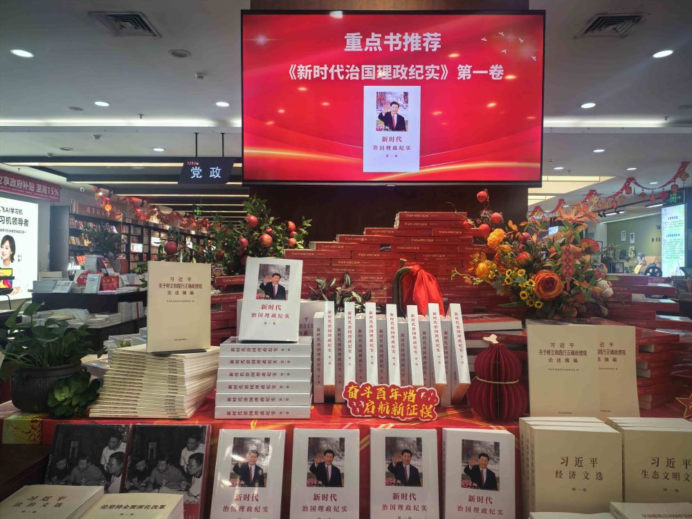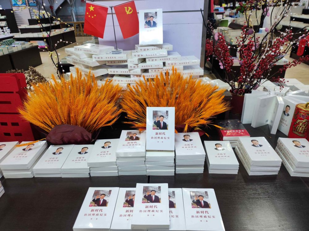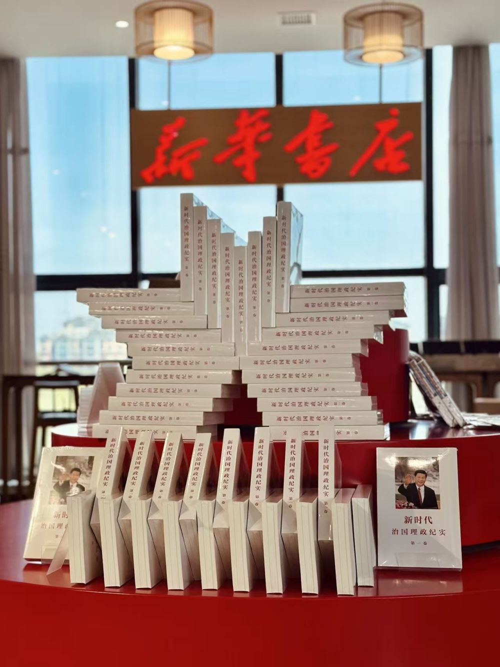近日,河南省新华书店发行集团所属各大门店重点展示展陈《新时代治国理政纪实》(第一卷)一书。该书由新华通讯社编撰、新华出版社出版,面向海内外发行。
