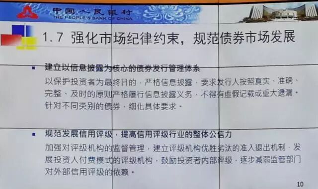 “前些年,大家担心的就是中国债券市场好像没有什么违约,都是刚性兑付,所以债券市场投资者偏好和发行人的偏好它没什么区分,债券市场的信用区分是在价格发行价格上,区分度很低,这样一种情况不利于债券市场健康发展。有适当违约,对于发行人也好,对于投资者也好,都是一种制约,它的这种信用的差别会表现在债券发行的价格上。所以我觉得这些事情对中国债券市场的长期和健康发展来说,是一件好事情。”潘功胜说。