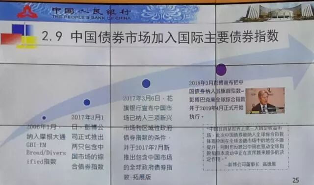 潘功胜表示,在3月份彭博宣布了把中国的债券纳入彭博巴克莱全球综合指数,并且于2019年4月正式开始执行。彭博主席谈到,中国目前是世界上第三大固定收益市场,此次中国债券被纳入全球综合指数,体现中国在全球金融市场中的地位不断提升,同时也反映出中国在驱动全球指数和资本流动中正在发挥越来越多的决定作用。“其他国际主要债券指数供应商,像摩根大通、花旗也在积极研究将中国的债券纳入他们旗舰债券指数。有助于增强指数代表性和吸引力,有助于国际投资者优化债券资产配置,有助于推动中国债券市场的改革发展,也有助于提升中国金融市场的国际影响力。”