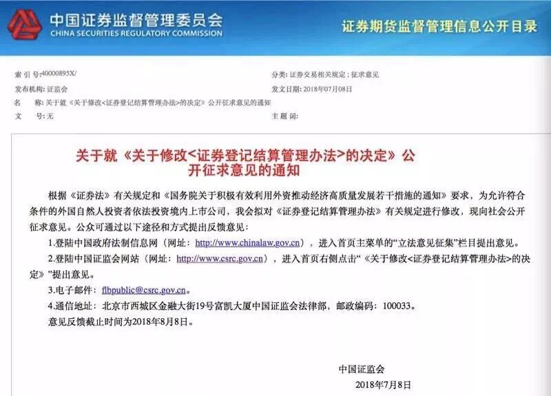 按照惯例,从征求意见稿到最终政策落地,需要一个月向社会征求意见,证监会将听取行业和市场反馈以完善政策部署。