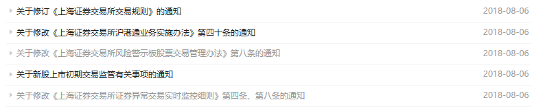 同时配套修订了《上海证券交易所沪港通业务实施办法》《上海证券交易所风险警示板股票交易管理办法》《上海证券交易所证券异常交易实时监控细则》及《关于新股上市初期交易监管有关事项的通知》(上证发〔2015〕59号)。