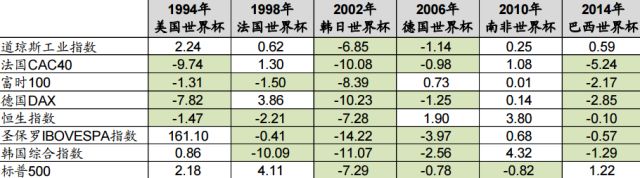 联讯证券分析师梳理了全球10个主要股指发现,近6次世界杯中,比赛期间45.28%上涨,54.72%下跌;比赛前一个月 43.14%上涨,56.86%下跌;比赛后一个月 47.17%上涨,52.83%下跌,总之是跌多涨少。