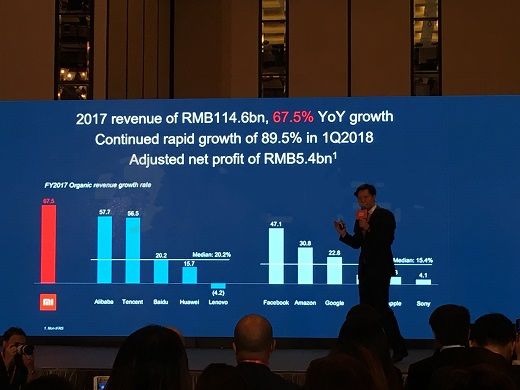虽然小米始终会保持较低的毛利率,但这并不意味着小米不赚钱。2017年,小米收入1146亿元,同比增速是67.5%,这个增速在全球大型公司里面排在第二位,在互联网公司里面排在第一位。至于为什么招股书显示小米去年亏损严重,雷军解释称,这是财务记账的原因,实际上小米去年是赚钱的,净利润达到54亿元人民币。