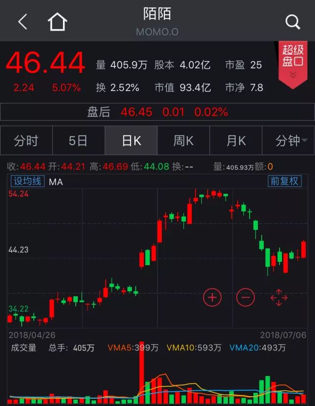 中概股普遍上涨 陌陌涨逾5%