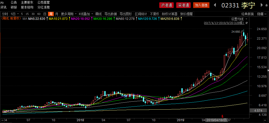 近段时间港股走势低迷,但李宁和安踏体育的股价却一路高歌猛进,前者于今年9月6日创下24.65港元的近九年新高;后者则在9月18日创下66.15港元的历史新高。