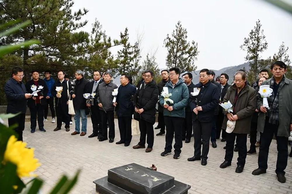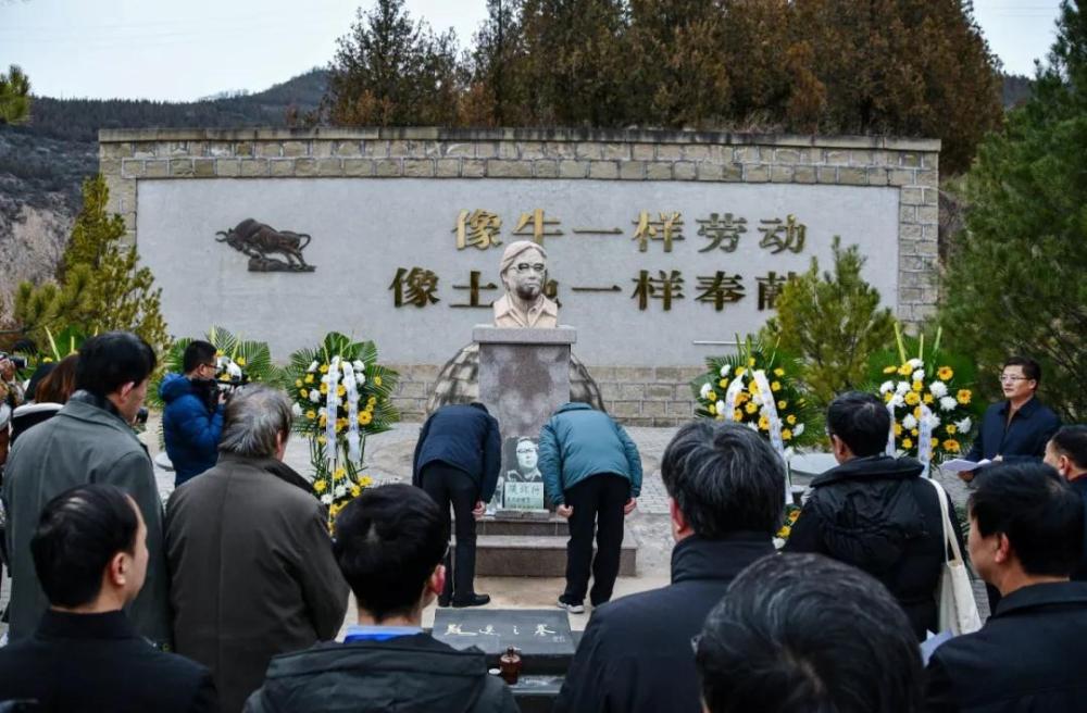 苍松凝立,翠柏无语,麻石砌筑的穹形墓体古朴而深沉,背墙上“像牛一样劳动,像土地一样奉献”两行大字庄重而醒目。大家在路遥墓碑和雕像前鞠躬、默哀、敬献花篮,绕墓缓行一周,缅怀这位先后荣获全国优秀中篇小说奖、茅盾文学奖、“改革先锋”荣誉称号和“最美奋斗者”荣誉称号的优秀作家。