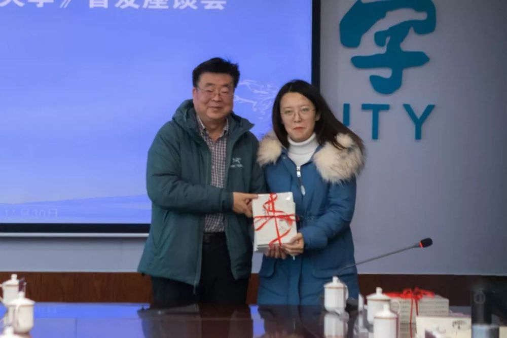 一沓沓崭新的图书由红布条捆绑,整齐地摞放在会场上。梁相斌社长代表新华出版社,向延安大学赠送了图书《路遥与延安大学》,张金锁校长代表延安大学接受了图书,文学院教师马海娟和文学院2019级现当代文学研究生王晶分别作为师生代表接受了图书。