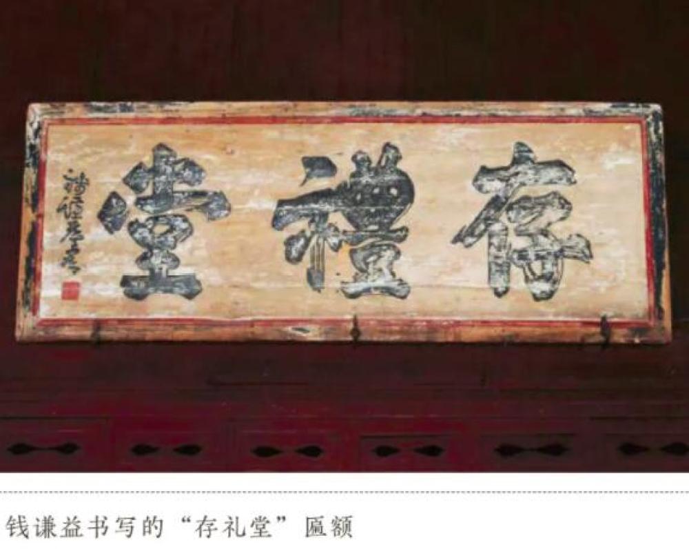 钱谦益,明末清初的名臣,官至礼部侍郎,也是著名的诗人、学者、书法家,他与“秦淮八艳”之一柳如是之间的爱情佳话更是在后世广为流传。据考,存礼堂匾额如此大的字体,是钱谦益存世的罕见墨宝。