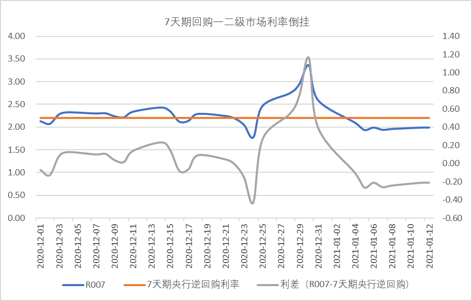 在轻松跨过年关,迈入2021年之后,货币市场迎来了一段资金面极宽松时光。银行间市场上隔夜回购DR001加权平均利率连续多个交易日低于1%,盘中最低成交到0.5%以下,处于史上极低水平;7天期回购利率也一度跌破2%,与7天期央行逆回购利率形成倒挂。