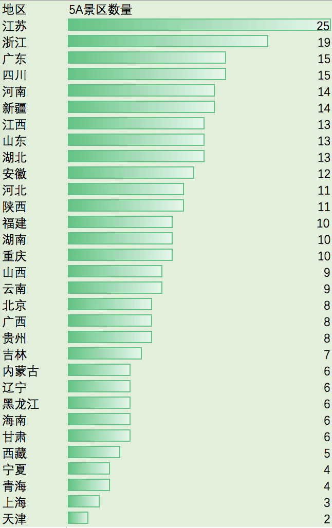俗话说“上有天堂下有苏杭”,江浙的好风景从5A景区数量就可以看出来,两地5A景区占了全国的近15%。