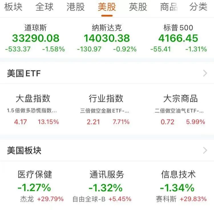 经济复苏类股票领跌市场。标普500指数工业板块和能源板块本周分别累计下跌5.2%和3.8%,金融和材料板块均下跌超过6%。此前,这些板块曾一直是市场领跑者。
