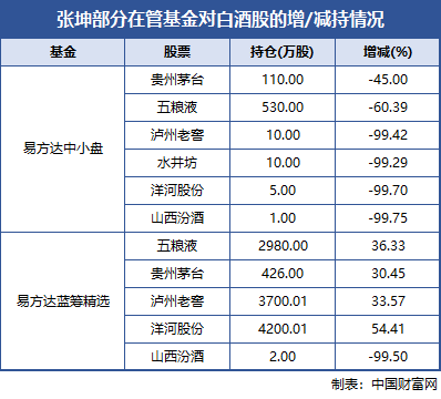 易方达蓝筹精选虽然对贵州茅台、五粮液、洋河股份等有不同程度增持,但对于山西汾酒同样是清仓式减持。