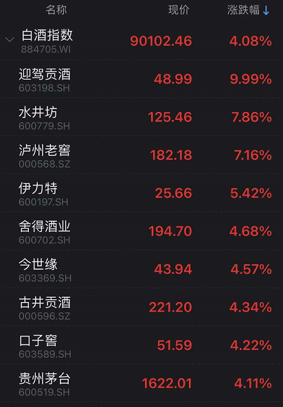 而白酒、保险、证券等低位板块大涨,迎驾贡酒以涨停之势宣告白酒股强势回归,水井坊、泸州老窖、贵州茅台也都大幅上涨。