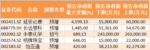 延安必康、长远锂科业绩预增超10倍