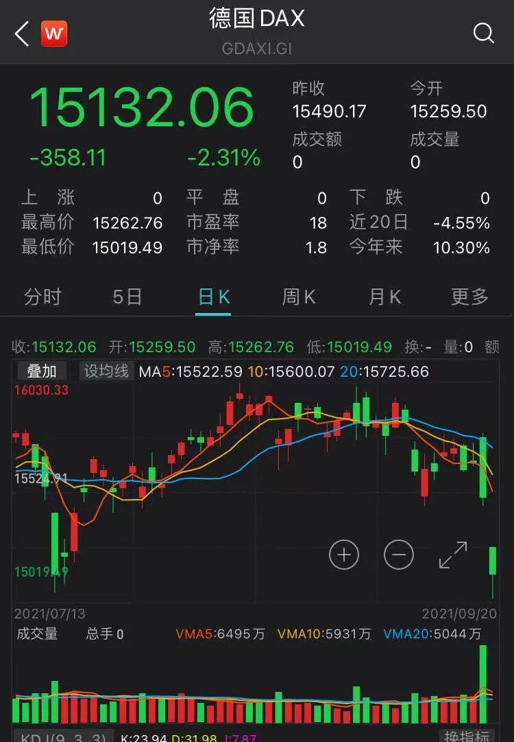 市场没有新的信息支撑暴跌行情,投资者正处于信息真空中,欧洲风险市场也同步大跌。
