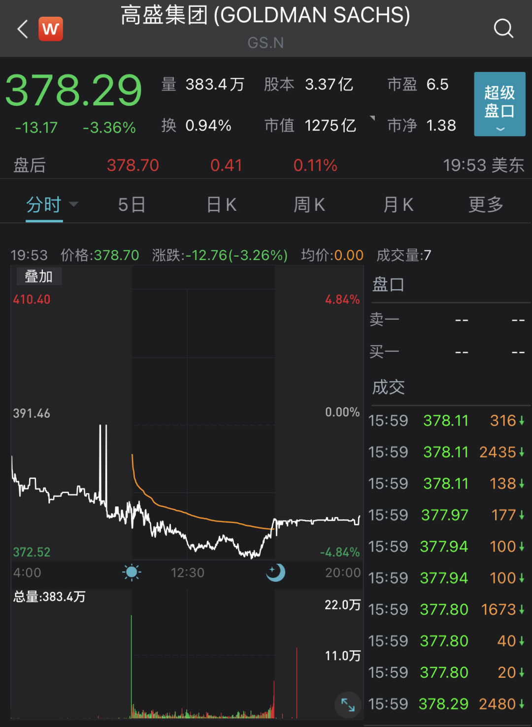 金融股方面,摩根大通跌2.96%,高盛集团跌3.36%,花旗集团跌3.76%,摩根士丹利跌2.98%,美国银行跌3.36%,富国银行跌1.53%。