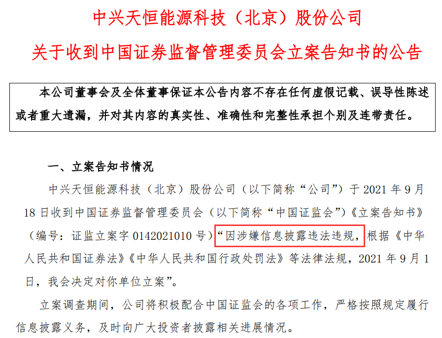 9月21日晚间,ST中天公告称,因涉嫌信息披露违法违规,公司收到中国证监会立案告知书。