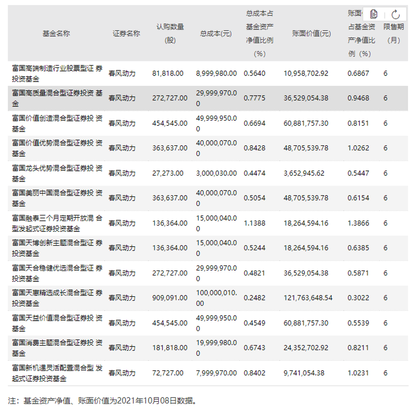 根据富国基金10月12日发布的公告,公募老将朱少醒管理的富国天惠精选成长混合共认购90.91万股春风动力,总成本约1亿元,占基金资产净值比例为0.2482%,以此计算,截至10月08日,富国天惠精选成长混合最新规模约403亿元。根据基金二季报,该基金二季度末的规模为445.56亿元,规模缩水约42亿元。在此期间,基金净值增长率为-7.55%。